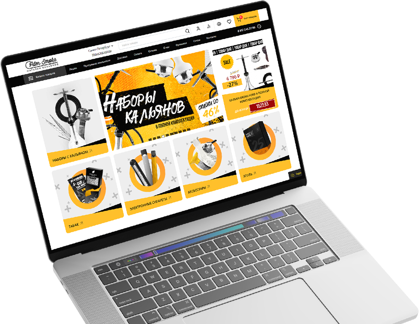 - Интернет-магазин. Остатки по товарам в CRM системе автоматически синхронизируются с витриной на сайте, что позволяет получать ежедневные заявки с сайта, которые повышают розничные продажи. Знаю, что компания вкладывает огромные ресурсы в интернет-магазин и есть интересный факт, если вы забьёте в поиске браузера к примеру «купить кальян», то даже если в вашем городе нет магазина PiterSmoke, то поисковик выдаст сайт PiterSmoke в топ 5 или на первом листе поиска;